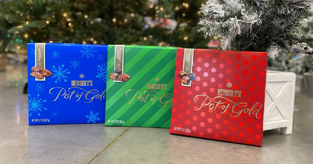 But it did say hersheys on the box, so that was a positive. Hershey's pot of gold gift box (8.9oz) $2.25 & more. Paid $5.00 for it plus tax. Emmanuelle bérubé production manager : A premium collection of truffles, nut clusters, caramels and other fine confections in milk and dark chocolate.